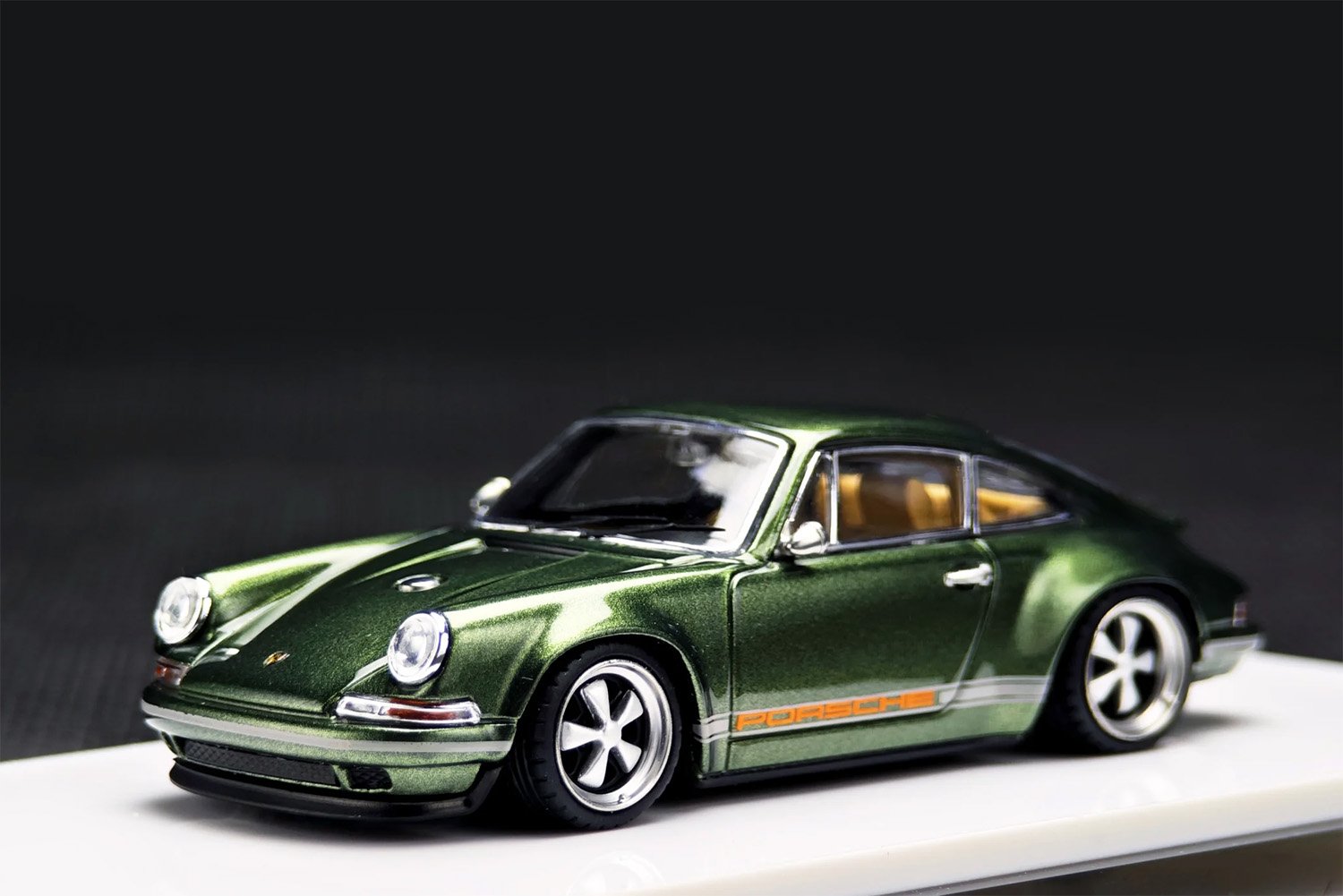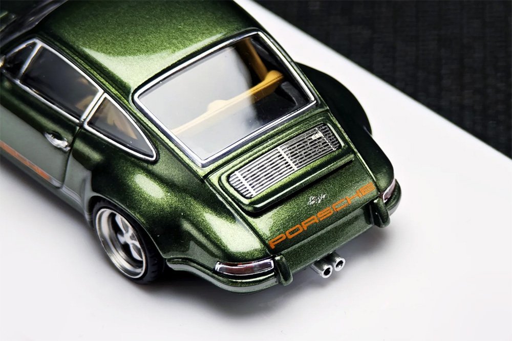 [STUNNING METALLIC FINISH] Expertly finished in Metallic Oak Green this 1:64 scale model captures the deep, sophisticated luster of one of Porsche’s most iconic “Paint to Sample” colors. The mirror-smooth paintwork beautifully highlights the Singer-modified classic 911 lines.